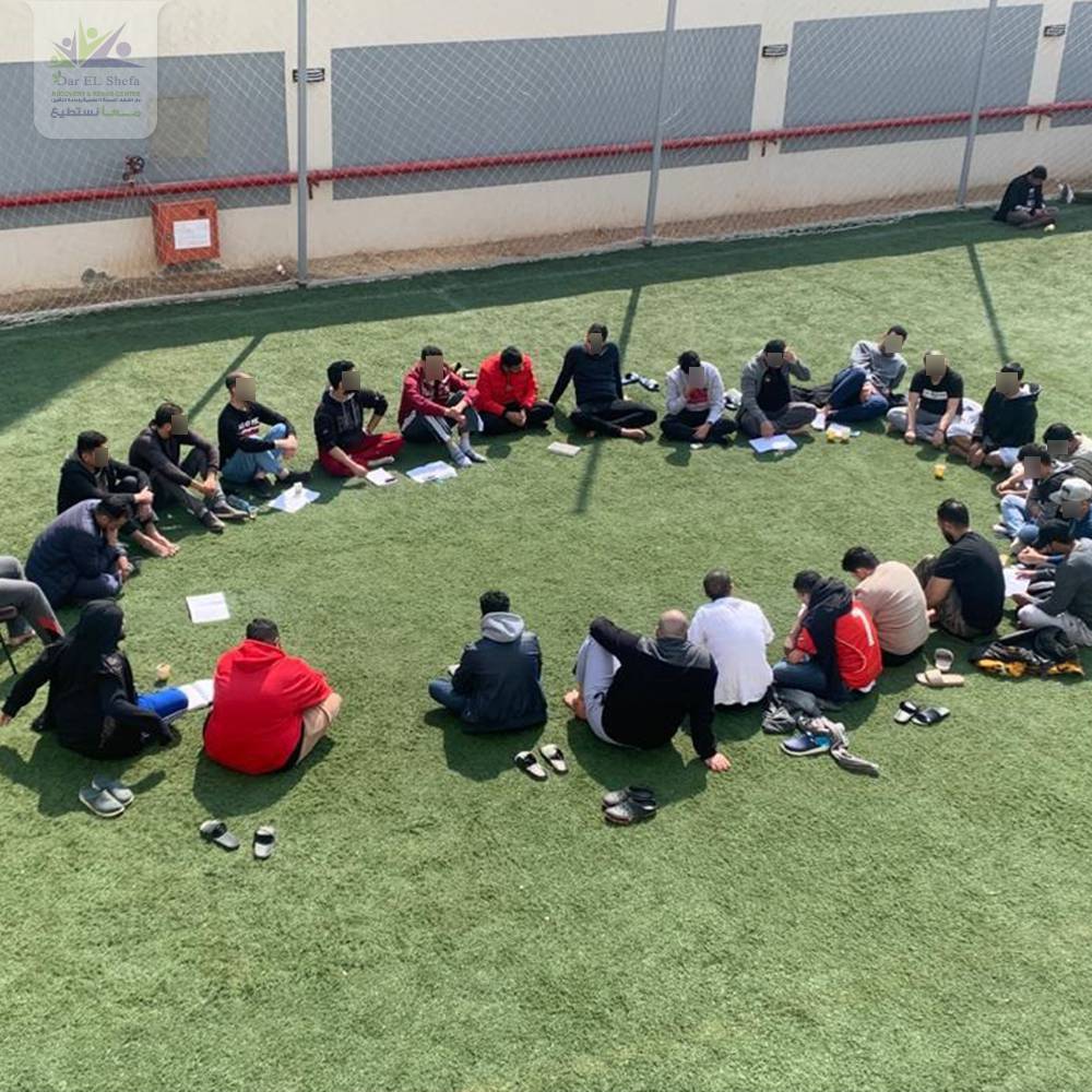 المجتمع العلاجى النشط داخل المستشفى يوفر محاضرات ثقافية وأنشطة اجتماعية داخلية يقوم بها فريق الأخصائيين الإكلينكى كمجموعات الرسم والموسيقى والمسابقات المتنوعة والمكافآت الفورية، مما يوفر جو من المرح والترابط بين المتعالجين أعضاء برنامج التأهيل، بالإضافة إلى خدمات المكتبة والجرائد حسب الرغبة.